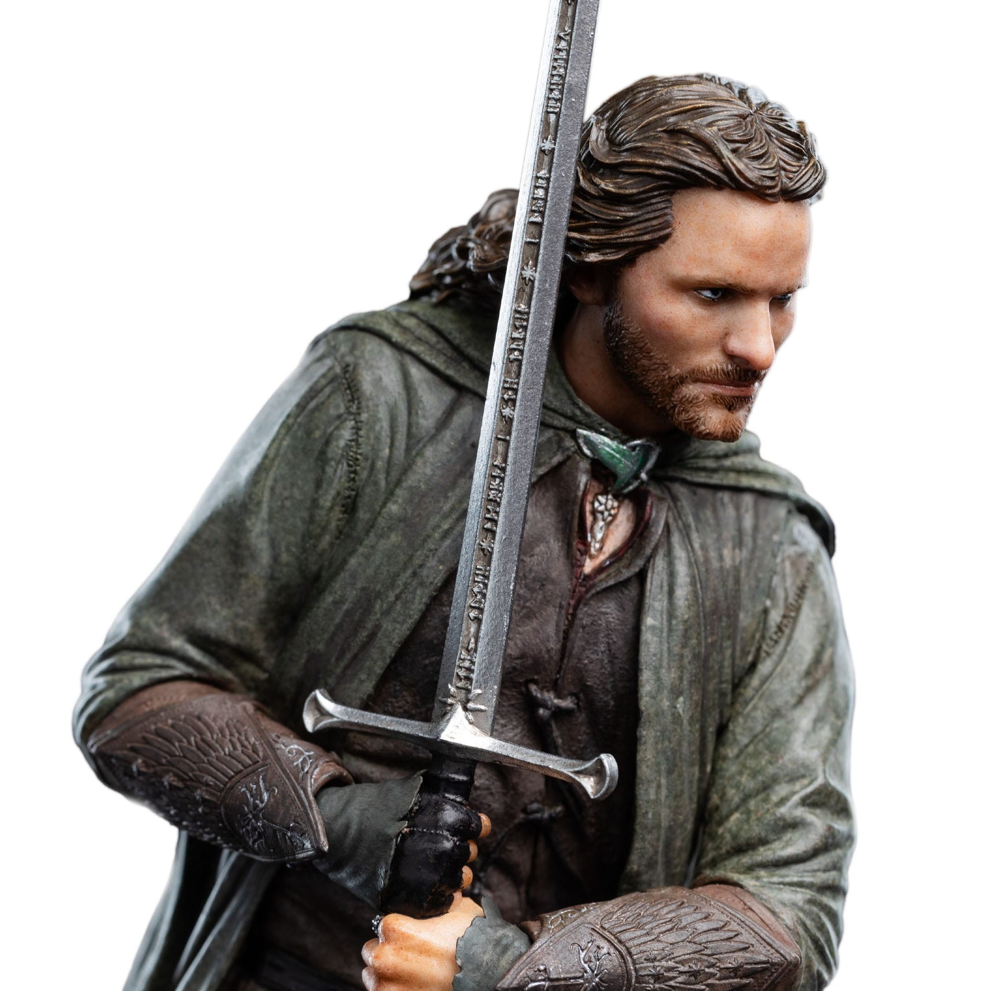 From the tension in Aragorn's stance to the fine detailing of Andúril™, every aspect speaks to motion poised to erupt, as if he might charge at any moment. The resolve to face the hordes of Mordor ™ is etched clearly upon his brow, and each detail is brought to life with the unwavering dedication and passion of our artists.