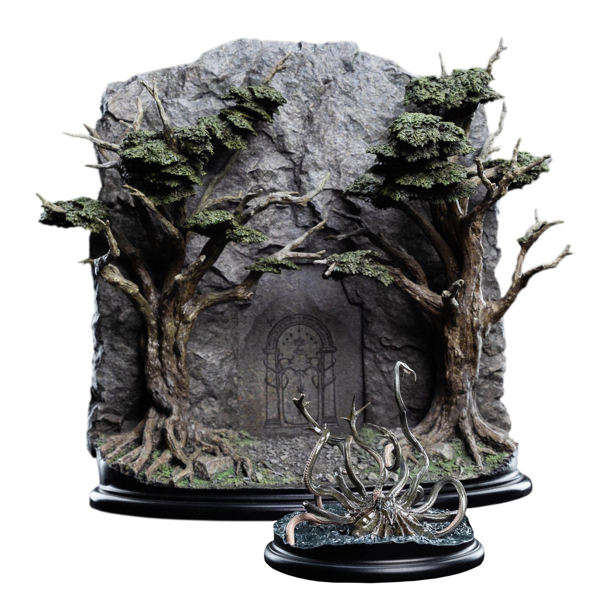 A relic from the depths of Middle-earth's darker realms, this miniature statue is a captivating addition to any collection. The uniquely sculpted form of the Watcher allows it to be appreciated from any angle. Showcase it erupting from your shelf or, thanks to the built-in socket in the base, mounted upon your wall, revealing its monstrous essence in full glory.
