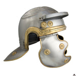 Our Roman Legionary Helmet is handcrafted from steel and brass and features hinged cheek pieces and brass decoration. Comes complete with a separate padded lining cap that can be glued in. 18 gauge steel construction - not recommended for re-enactment.