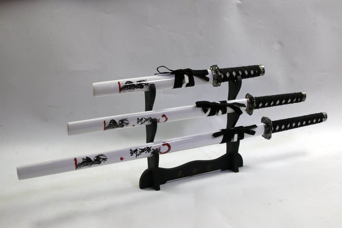 A triple set of blunt metal display katana. Tsubasa is named for freedom and strength, soaring above with warrior will.
