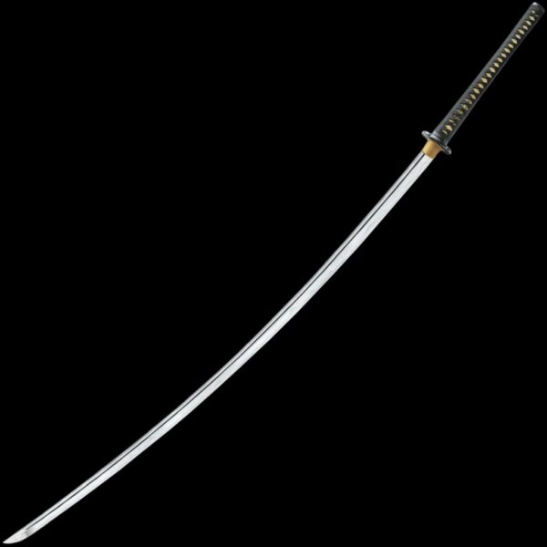 - The tsuba and handle fittings are of solid brass and the wooden handle has traditional cord wrapping over genuine, tea-dyed rayskin