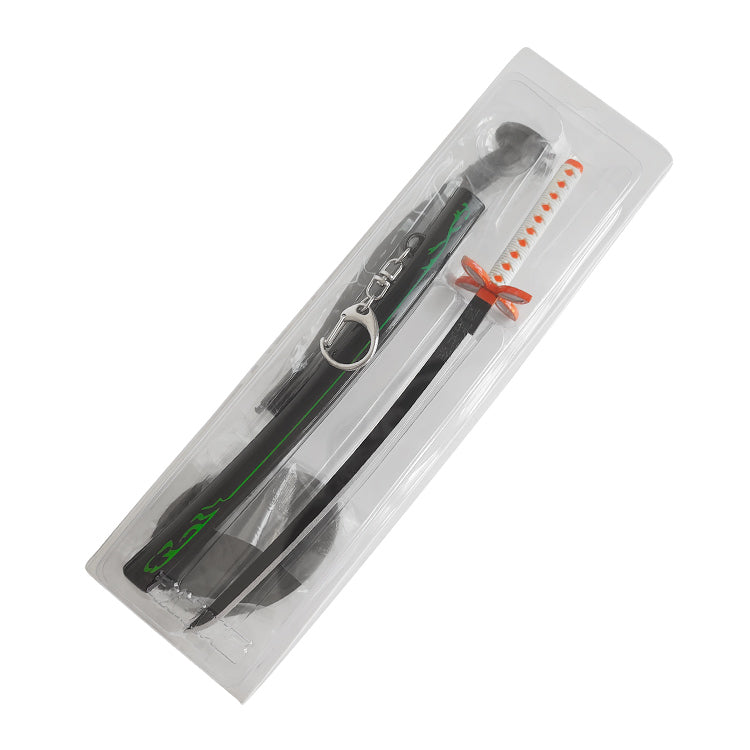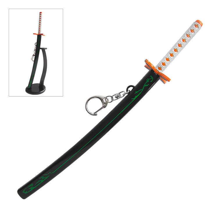 Product includes metal keychain katana collectable (22cm), sheath.