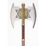Ideal for a the Dwarf, of a fellowship, to carry a unique and remarkable double-headed axe that we have recreated in exquisite detail. It is made of wood, leather, and metal and comes with a wall mount for easy display. Measures approximately 34 inches in length.