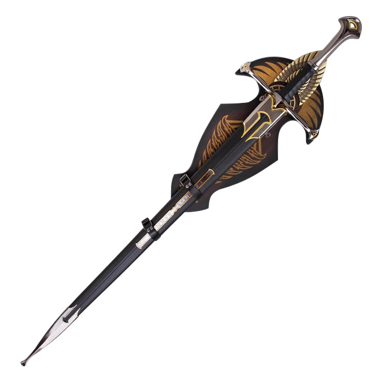"Very bright was that sword when it was made whole again; the light of the sun shone redly in it, and the light of the moon shone cold, and its edge was hard and keen. And Aragorn gave it a new name and called it Andúril, Flame of the West." —J.R.R. Tolkien. Andúril, also called the Flame of the West, is the reforged sword from the shards of Narsil. (After the War of the Last Alliance, the shards of Narsil had been taken to Rivendell.) It was the sword of Aragorn II Elessar, heir of Isildur.