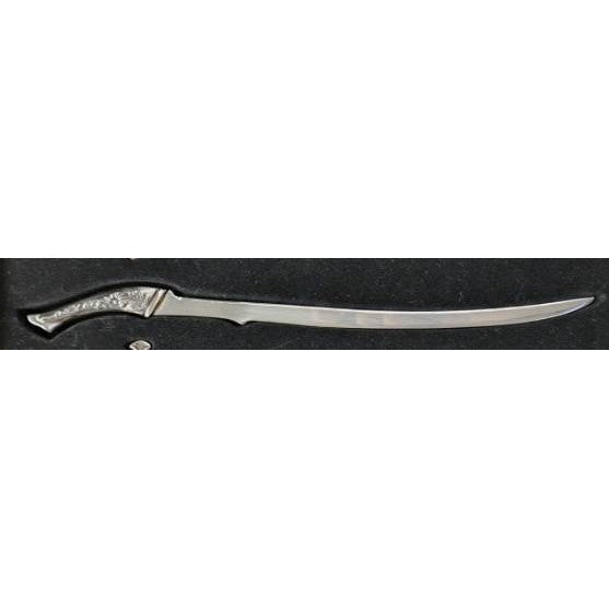 Inspired by Hadhafang, the elegant Elven blade wielded by Arwen Undómiel, this beautifully scaled letter opener brings the grace of Rivendell to your desk. Slender, refined, and unmistakably Elven in design, Hadhafang represents quiet strength — a weapon carried not for glory, but for protection and purpose.