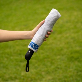 Extendable umbrella made of polyester fabric, with a sturdy metal and PVC frame. It has an automatic opening system operated by a button on the handle, which is also made of PVC. It incorporates a Velcro closure system. Includes protective cover. Closed dimensions: 7 x 30 x 7 cm. Open dimensions: 100 cm diameter and 57 cm high.