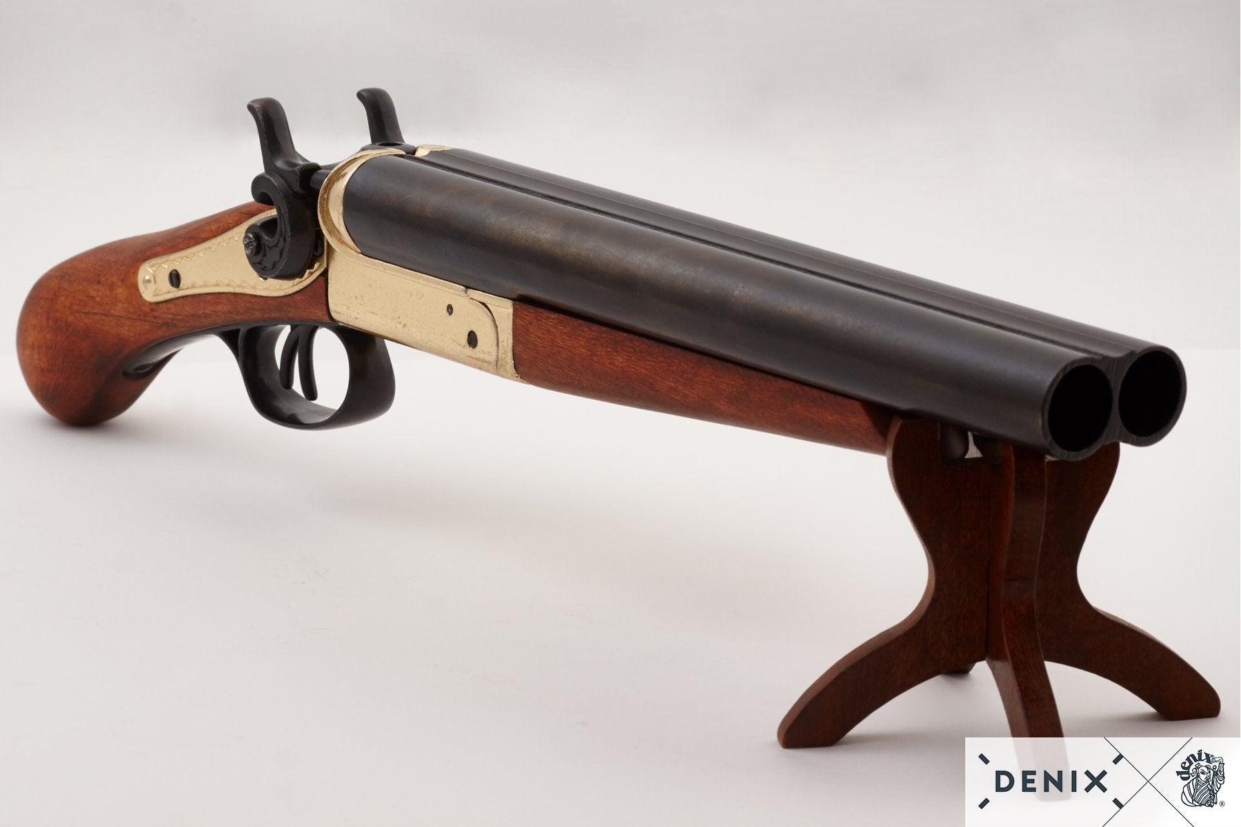 This 2-barreled gun is the result of shortening the shotgun, used by Wyatt Earp, to make it lighter and more manageable.