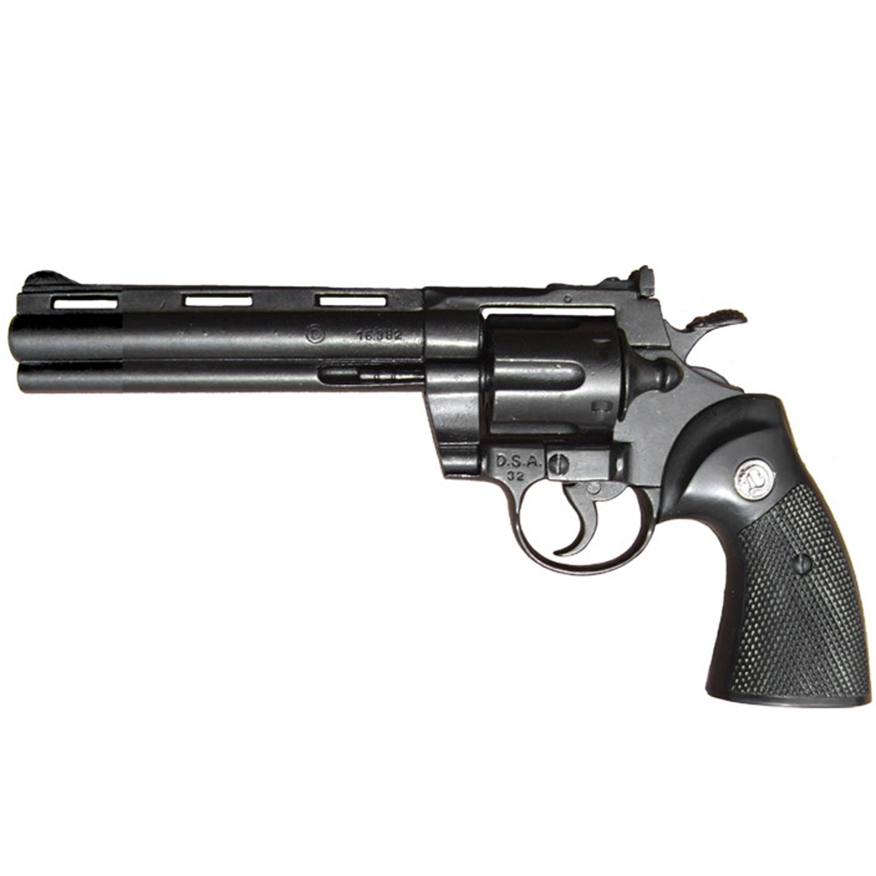 Reproduction of a revolver, made of metal and with plastic grips, with simulated mechanism of loading and firing and also with rotating drum.