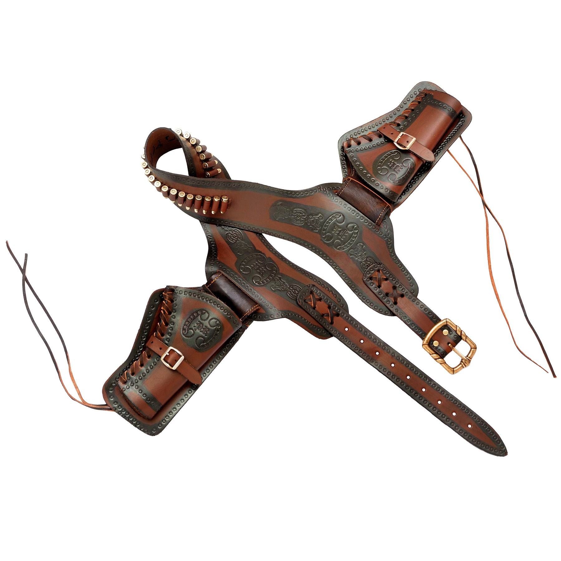 A great double holster with cartridge belt and bullets, a great addition for any wild west enthusiast, store your replica colts in style. We've included 24 replica bullets to complete the look.