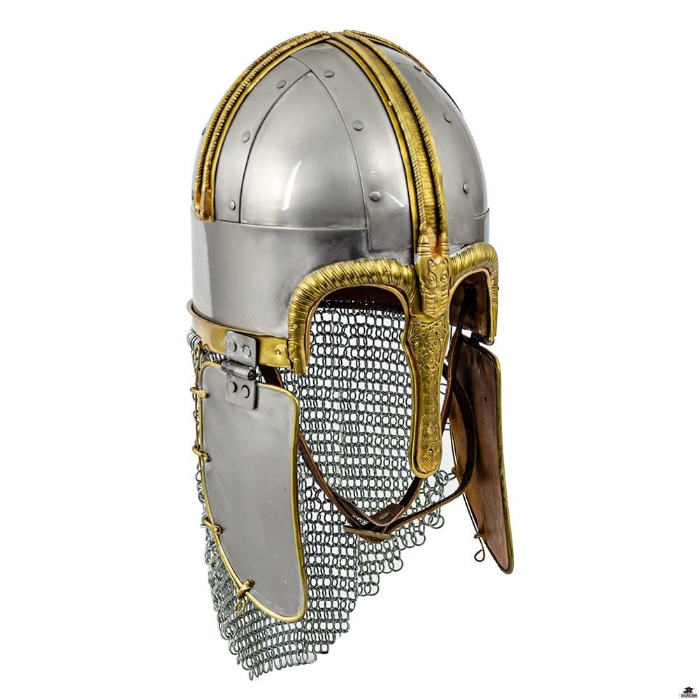 Our Coppergate Helmet replica is hand crafted from steel and brass with many intricate details that are hand finished after casting - in the same way the original helmet was made over a millennia ago.